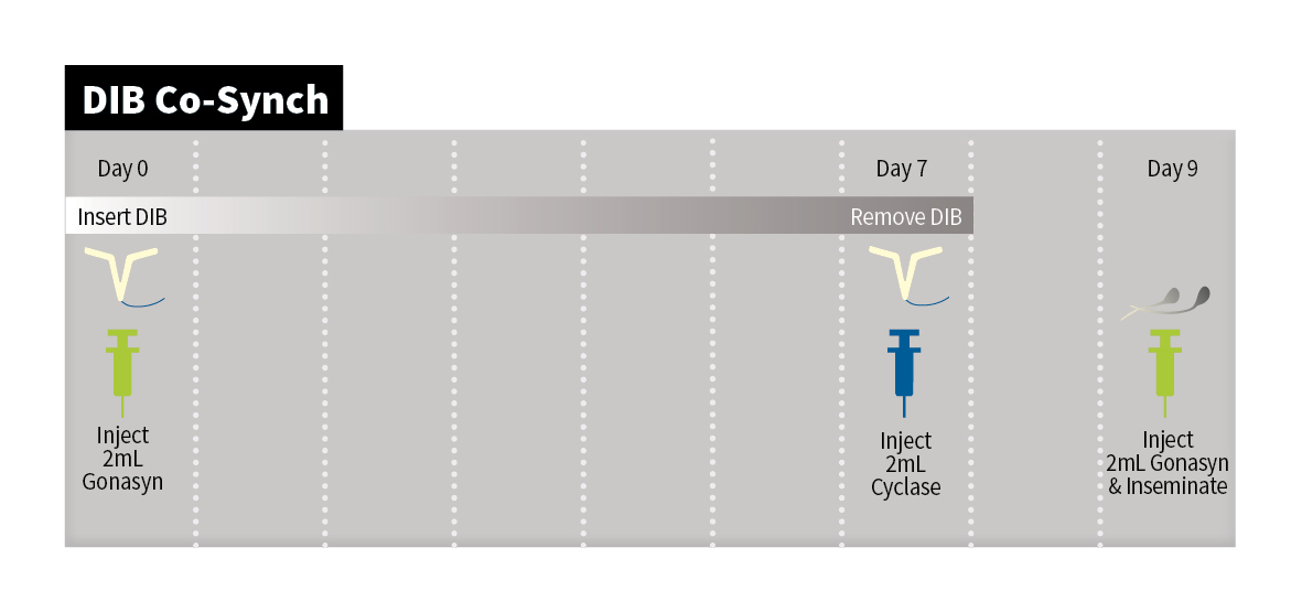 There are two main programs for synchronising heifers. Double PG is only a viable option when (i) animals are ovulating (having reached puberty) and (ii) heat detection and AI is available for a minimum of four days. In most scenarios, DIB CoSynch will provide a superior return on investment for NZ dairy heifers or beef cows due to superior expected pregnancy outcomes with this program.